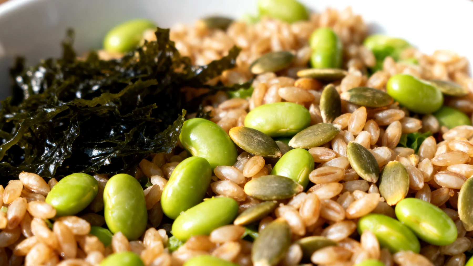 Con un apporto di circa 350-400 calorie per porzione, composta da 50 grammi di farro crudo, 100 grammi di edamame, 10 grammi di wakame e 20 grammi di semi di zucca, questo piatto si posiziona idealmente come pasto principale di metà giornata. La distribuzione equilibrata tra carboidrati complessi (circa 50%), proteine vegetali (circa 25%) e grassi di qualità (circa 25%) garantisce un rilascio energetico graduale, evitando il classico calo pomeridiano che spesso segue pranzi troppo ricchi di zuccheri semplici o poveri di nutrienti essenziali.
